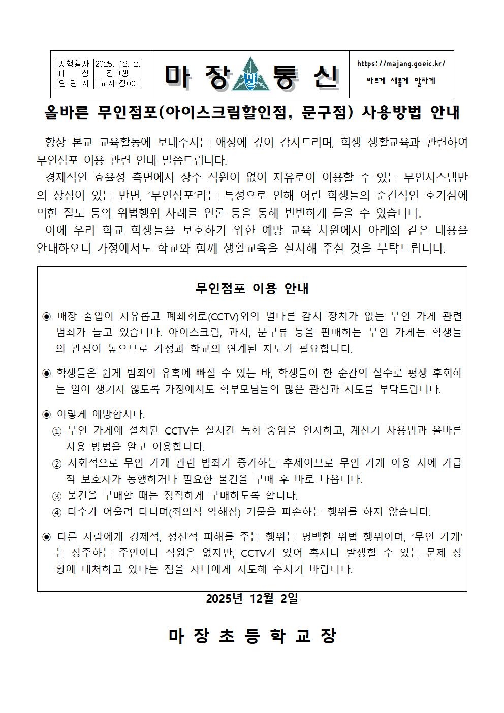 올바른 무인점포(아이스크림 할인점, 문구점 등) 사용 방법 안내